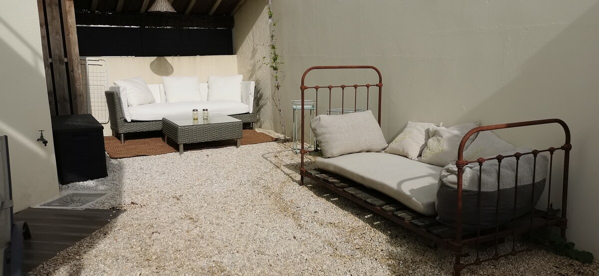 Et donem la benvinguda a aquest encantador estudi al cor de Sainte Marie de Ré, a prop de serveis i situat a 800 m de les primeres platges. Aproximadament 22 m2, és completament independent, recent i completament renovat. Al voltant de 2 espais exteriors (tenda i pati orientat al sud) tindràs una zona de bany i una cuina - sala d'estar - dormitori. El llit emmagatzematge (160x200) està fet a l'arribada i es proporcionen tovalloles!