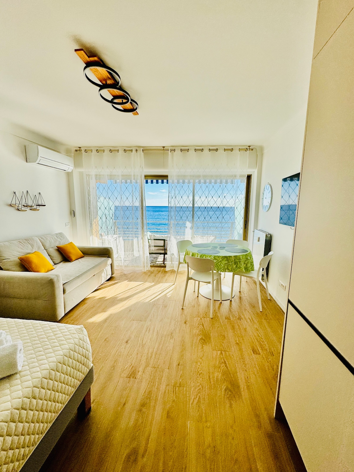 Acollidor estudi de 28 m² per a 2-3 persones amb balcó habitable i accés directe al mar. Es troba a 5 minuts a peu de l'estació, a 10/15 del carrer principal (5 en cotxe) on trobaràs botigues, una oficina d'informació i autobusos. La porta del jardí del condomini s'obre al bonic camí que s'estén al llarg del mar (sentier du Littoral), de 5,5 km de llarg, que connecta Plage Mala (15 min), equipada amb para-sols, gandules i bars/restaurants, a Mònaco (25 min)