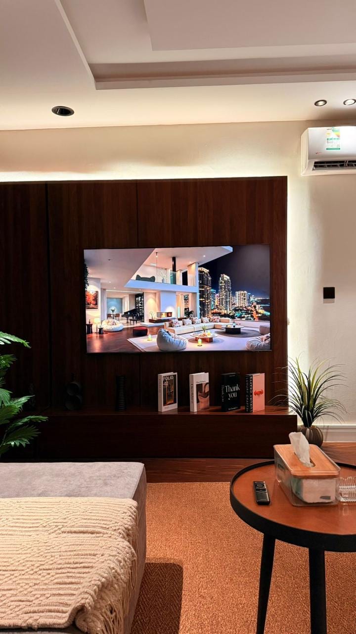 L'apartament està situat en un dels barris més elegants del nord de Riad, el barri d'Al-Rabie, i està dissenyat amb mobles de luxe d'última generació i conté una pantalla intel·ligent de 75 polzades, internet d'alta velocitat i una màquina de cafè Nespresso L'apartament té entrada pròpia i total privacitat, i davant del complex hi ha un passeig marítim, i està a 15 minuts de Riyadh Boulevard i també a 10 minuts del Centre Financer King Abdullah. Està a 15 minuts de l'aeroport internacional King Khalid sense haver d'aturar-se davant de cap semàfor També hi ha una subscripció (NETFLIX - Shahid) Possibilitat d'entrada d'hostes Accés independent
