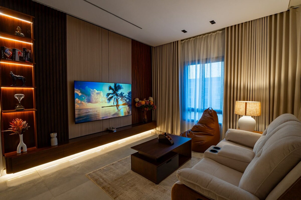 Pis modern d’1 habitació a Hittin, una de les zones més exclusives de Riad, a pocs minuts de Boulevard City i de les millors cafeteries. Dissenyat per oferir comoditat i facilitat, amb accés independent i un sistema intel·ligent complet. Disposa d'una acollidora sala d'estar, un dormitori còmode, una televisió intel·ligent de 85 polzades i una elegant llar de foc elèctrica per gaudir d'un ambient relaxant. Cuina totalment equipada amb forn, microones, fogons elèctrics, rentaplats i rentadora. Net, elegant i ideal per a parelles, viatgers de negocis i estades curtes o llargues.