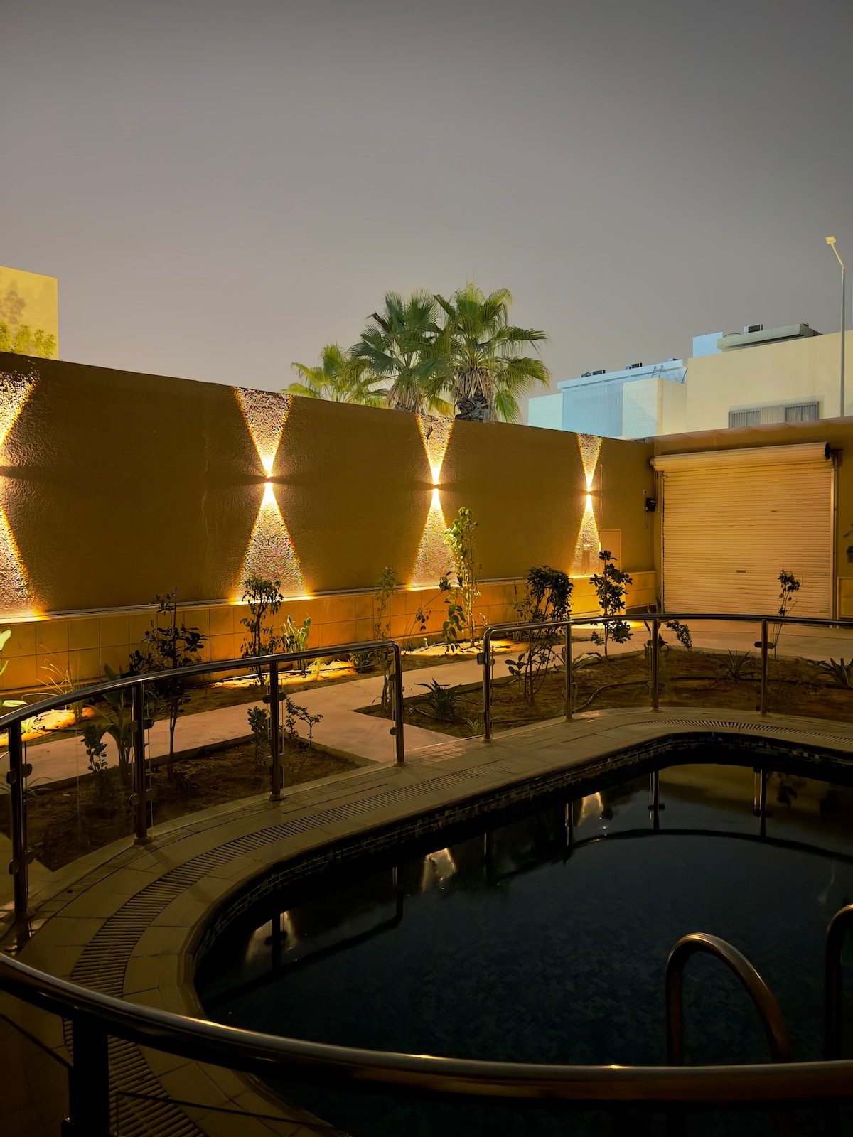 Relaxa't en aquest habitatge tranquil i elegant Xalets d'hotel petits aptes per a 2 persones Piscina coberta climatitzada Un petit vestíbul obert a la piscina i al dormitori Accés independent amb total privacitat Hora d'arribada i de sortida Arribada a les 16:00 Sortida a les 4:00. Amb la possibilitat de passar la nit per un preu addicional ⛔️ Nota No s'admeten més de dues persones No s'admeten nens Cal pagar un dipòsit de 200 riyals en efectiu abans d'entrar. Es reembossarà en el moment de la sortida.