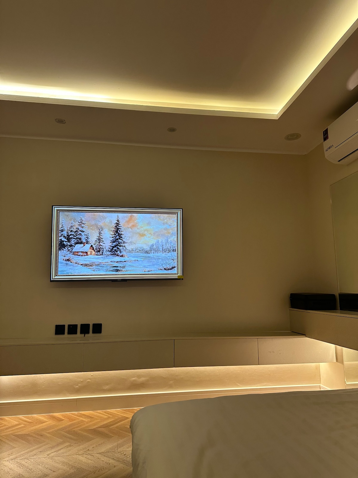 هذا الاستوديو يتميّز بموقعه المثالي في قلب حي الملقا الراقي، وعلى مقربة من البوليفارد والوجهات الحيوية في الرياض. تم تجهيز المسكن بذوقٍ عالٍ ليوفر لك تجربة إقامة فاخرة ومريحة، حيث يحتوي على شاشة 65 بوصة، وسرير كبير جداً يضمن لك أقصى درجات الراحة، بالإضافة إلى أثاث فاخر وتصميم داخلي أنيق يليق بالذوق الرفيع. سواء كنت في زيارة عمل أو للراحة والاستجمام، ستجد في هذا المكان كل ما تحتاج إليه لإقامة استثنائية