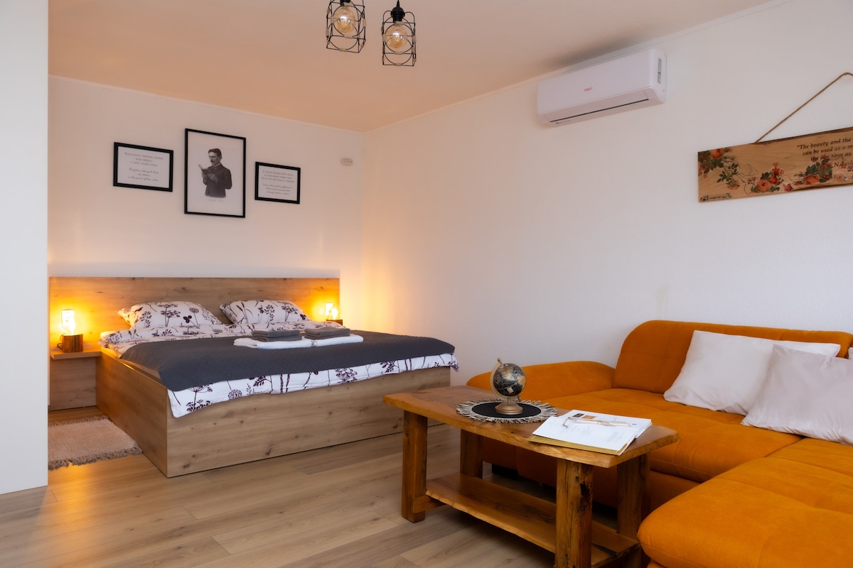 Et donem la benvinguda a la nostra suite petita però acollidora, perfecta per a viatgers solitaris, parelles o qualsevol persona que busqui un racó acollidor i tranquil al cor de Lika. L'estudi està situat a només 7 minuts del lloc de naixement - Centre Nikola Tesla i a 20 minuts del mar Adriàtic. És ideal per a una estada curta, un descans de la feina, una escapada de cap de setmana, nedar al mar o com a base per explorar la natura verge. Nota: l'apartament és a la segona planta d'un edifici antic sense ascensor, comparteix un passadís comú amb una altra unitat d'allotjament.