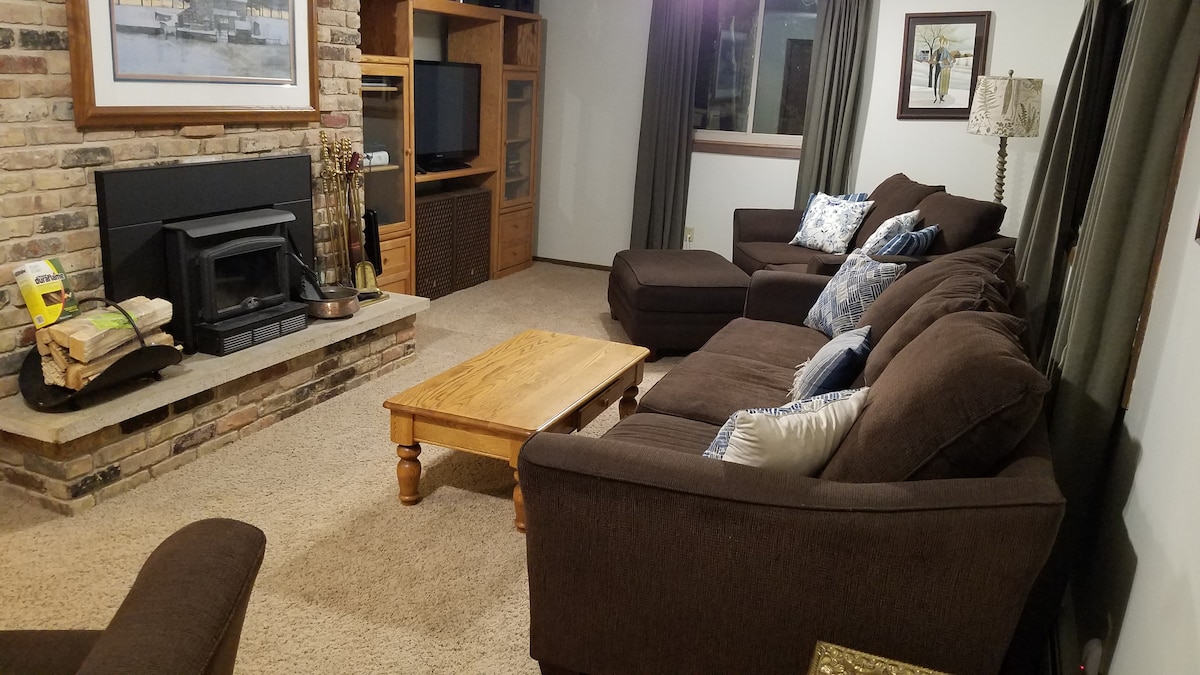Room to spread out! Entire house to yourself, near Mayo Clinic, Single Family Home. Modern 2 bedrooms, 2 baths, kitchen, dining room, beautiful living space and rec room. Amazing quiet location on dead end street near park, excellent restaurants, shopping and Mayo Clinic. Unpack and unwind with choice of shade or sun patio, abundance of walking trails & exercise equipment. All the amenities to cook and launder, we have you taken care of. We look forward to welcoming you to Rochester!
