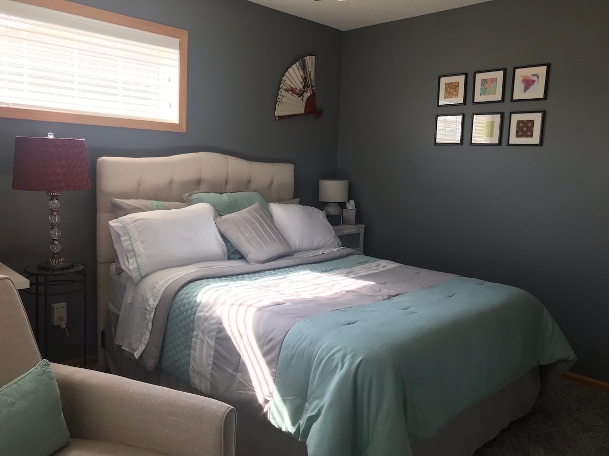 The place is located in a quiet and beautiful neighborhood. Spacious private room with Queen bed; walk in closet and dedicated bathroom (not attached); TV, microwave, mini-fridge, coffeemaker & K-cups. Open Parking space on premise. Bedroom is on 2nd floor, walk-up stairs. Loft area has dedicated office desk with monitor. Yoga mat, stretch bands available. The serene "Douglas Trail" runs close to the house. Bus stop (Route 419) to downtown is at 0.3 miles. Mayo clinic is 8 miles.