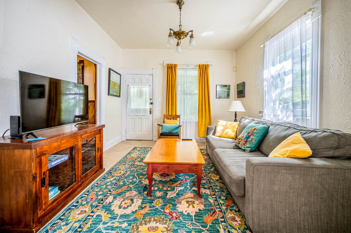 **NOVETAT! ** La gruta de l'espa i la sauna està a punt per a la teva escapada romàntica a Bend! Aquest bungalou independent, tranquil, boscós i cèntric es troba a pocs passos del sender del riu Deschutes, a poca distància a peu de Mill Dist. i de l'amfiteatre Hayden. Disposa d’un llit «king size» còmode amb roba de llit i coixins de plomes de primera qualitat, aparcament gratuït exclusiu (i espai per a cotxes addicionals o autocaravanes petites), zona de menjador i pati a l’aire lliure, rentadora/assecadora i una cuina totalment equipada amb tot el que necessites per divertir-te i relaxar-te en qualsevol època de l’any!
