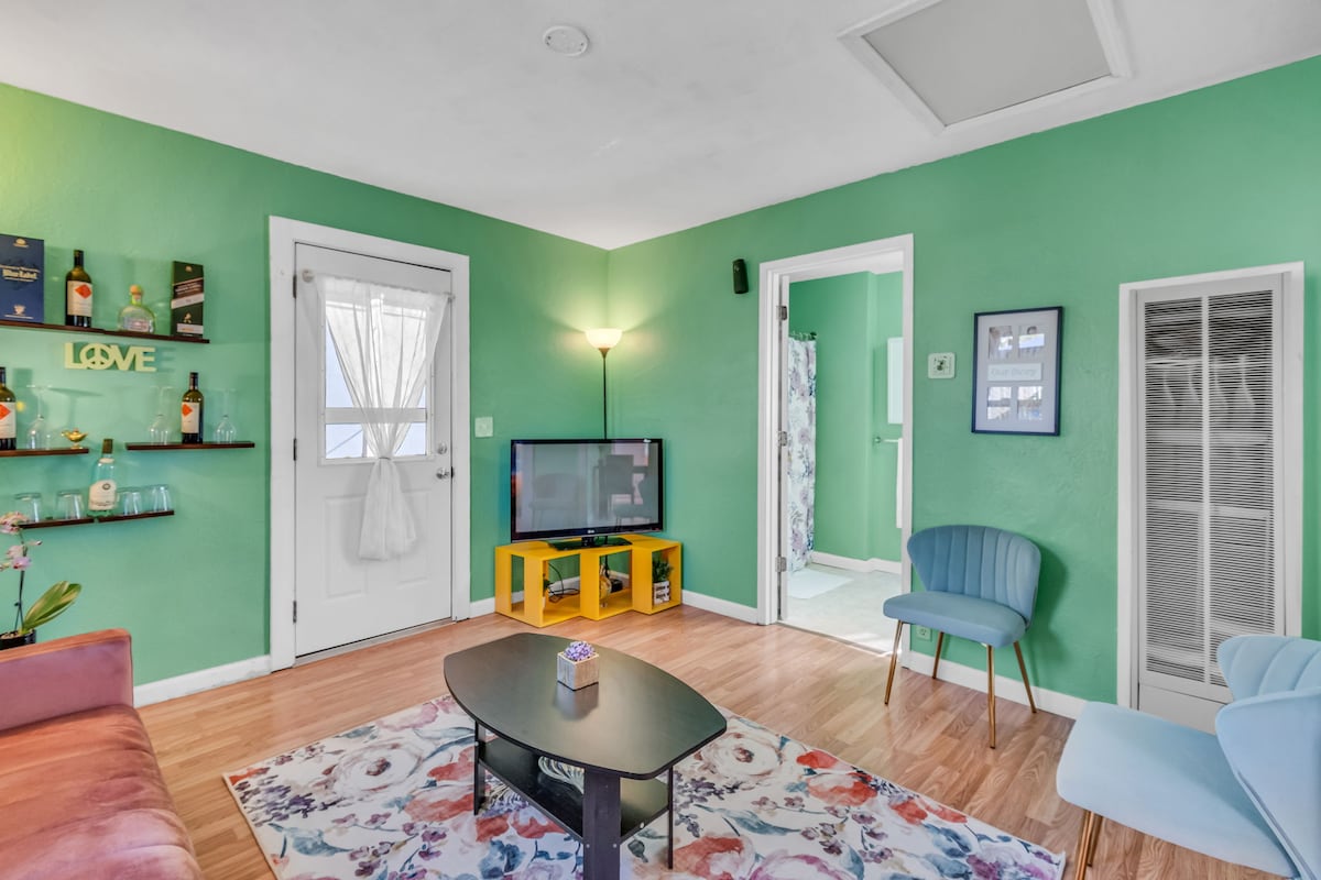 Vine i gaudeix d'aquesta unitat d'1 llit. Un dormitori acollidor i lluminós amb un llit queen còmode. La sala d'estar consta d'una zona de menjador específica i una zona de relax amb sofà i televisor. La cuina petita inclou un microones, un forn petit i una cafetera K-Cup, però no hi ha FOGONS. Aire condicionat de calefacció i refrigeració recentment instal·lat. Aquesta suite forma part d'una casa unifamiliar. La resta de la casa també es lloga com a unitat d'Airbnb, però amb entrada independent. La zona de la terrassa és compartida. L'entrada es troba al pati del darrere.