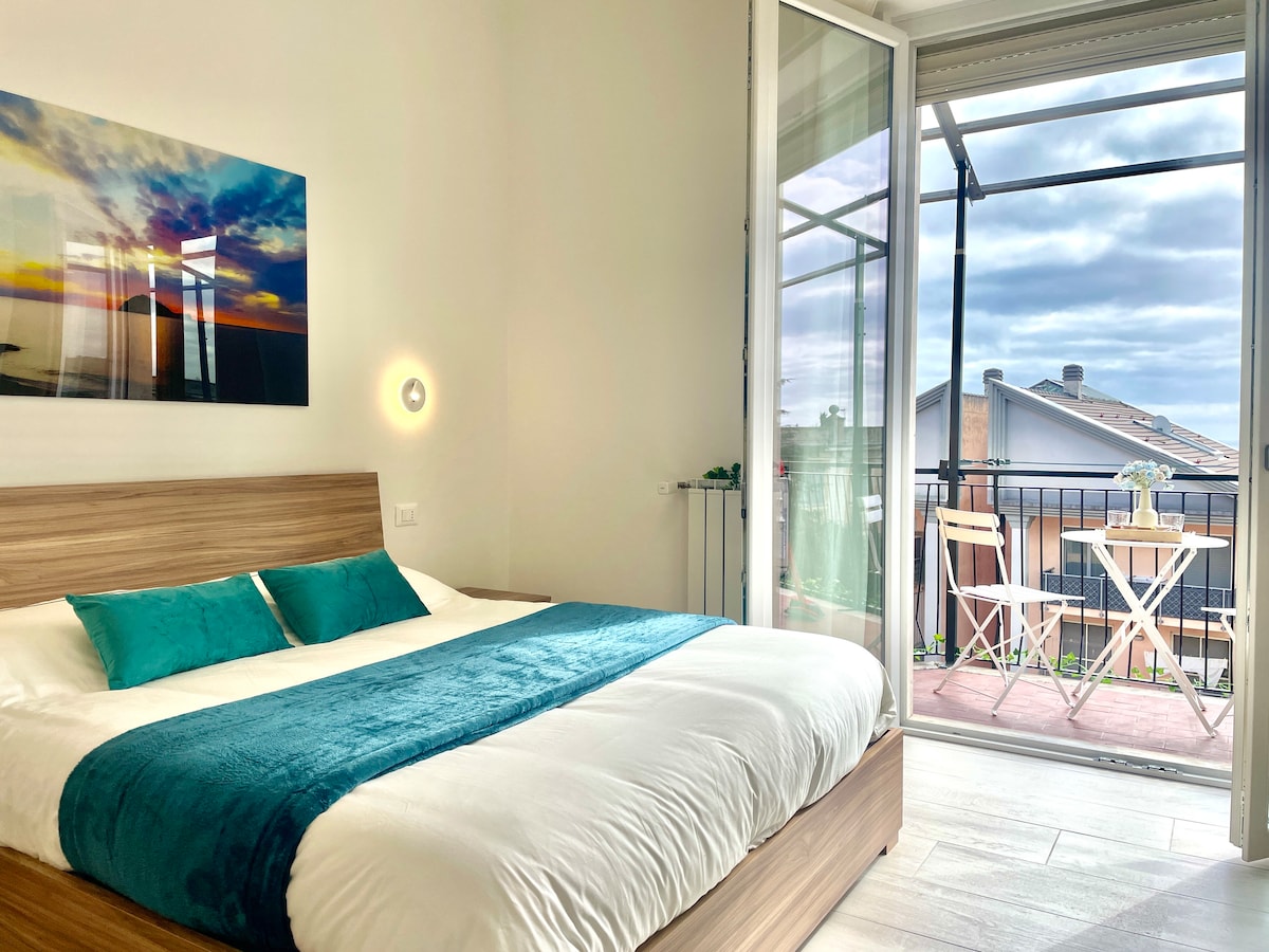 Elegant habitació amb entrada i bany privat, balcó amb vistes al mar, per total independència i tranquil·litat. Situat a prop de les platges per a una estada agradable a Alassio. Equipat amb aire condicionat. Habitació amb entrada pròpia, bany privat i balcó. Aire condicionat inclòs.