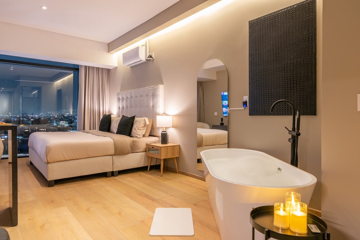 Gaudeix d'aquest meravellós apartament d'1 dormitori: * Impressionants vistes panoràmiques a l'horitzó * De tipus únic * La millor ubicació de Mèxic a Ciutat * Súper segur + Molts restaurants + cafeteries + botigues i molt més * Els millors serveis * Conserge les 24 hores al vestíbul * Wifi molt ràpida i molt fiable. * Espai de treball còmode * Cuina totalment equipada * Llit «queen size» amb matalàs d'escuma viscoelàstica europeu. * Espai ben pensat i molt còmode * Plena de plantes * Neteja i higienització * Espaiós * Plena de màgia