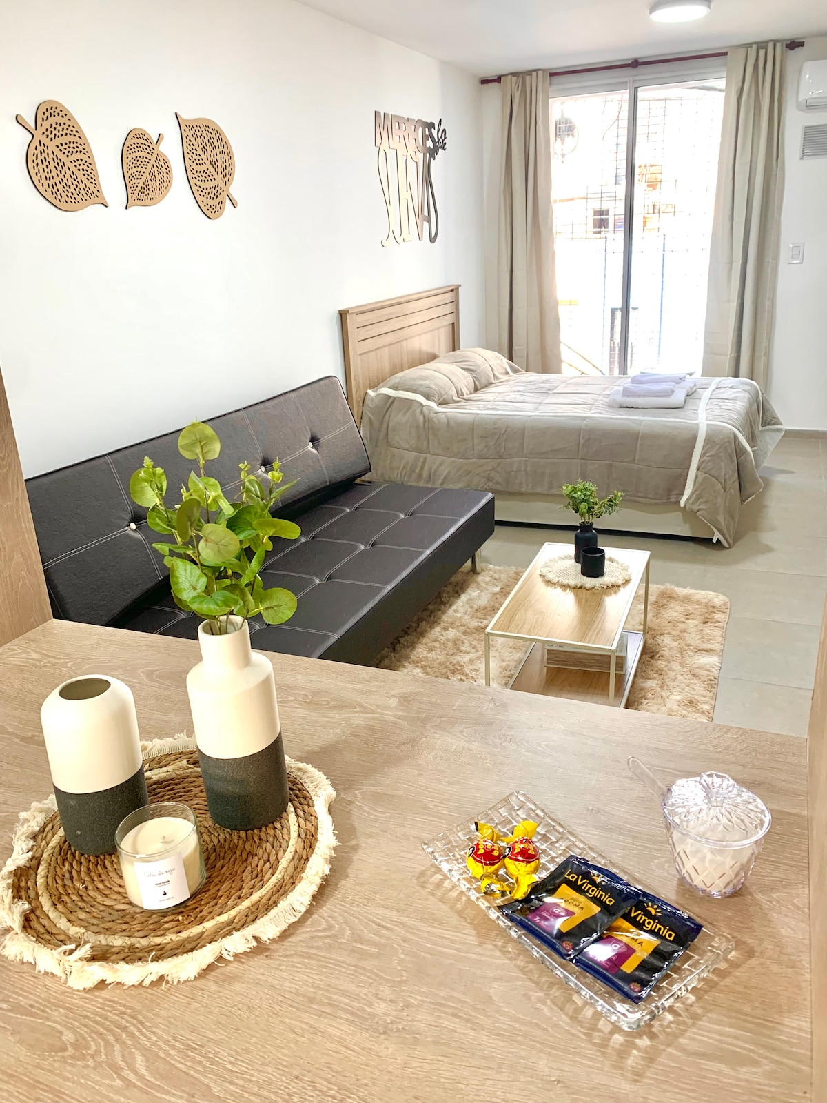 Nou centre, apartament estudi espaiós, modern i molt lluminós. Totalment equipat, disposa de televisor de 42"(NEFLIX, Prime Video, Disney+), vajilla i electro, roba de llit i tovalloles. Té un balcó amb vistes al riu i es troba a 100 metres de l'emblemàtic Bv. Oroño, a la zona de parcs, bars i restaurants, immillorable per sortir a passejar, tant de dia com de nit. Garatge privat en PB a l'establiment inclòs en el preu, adequat per a cotxes, SUV o furgoneta petita.