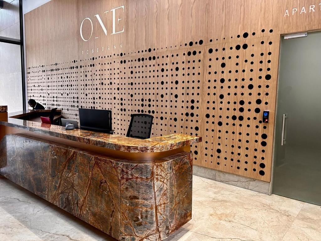 Gaudeix del luxe definitiu en aquest impecable àtic de 2 llits i 2,5 banys a la planta 12, situat a uns passos del centre comercial Rosebank. Els dormitoris disposen de llits «king XL», televisors intel·ligents, bany privat amb tocador doble amb banyera i dutxes a peu, mentre que la sala d'estar disposa d'un televisor de 85", llar de foc de gas, taula de menjador de 6 places i un balcó amb braai integrat. La cuina està totalment equipada per als hostes amb servei d'àpats i tot l'apartament està cobert per aire condicionat i wifi de 500 mbps. Sense reducció de càrrega.