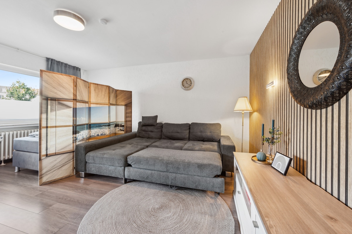 La teva escapada elegant a Essen, amb sauna privada, jacuzzi i llar de foc. Et donem la benvinguda a un allotjament que és molt més que un allotjament! Coses a tenir en compte: - Zona de benestar exclusiva amb sauna privada i jacuzzi, així com una gran gandula de relax, il·luminació indirecta, televisor, control smarthome. - Acollidora sala d'estar amb taula de menjador, llar de foc i dues butaques còmodes: el teu allotjament per acabar el dia. - Dormitori tranquil amb llit de matrimoni d'alta qualitat. - Hi ha molts detalls afectuosos a cada habitació.