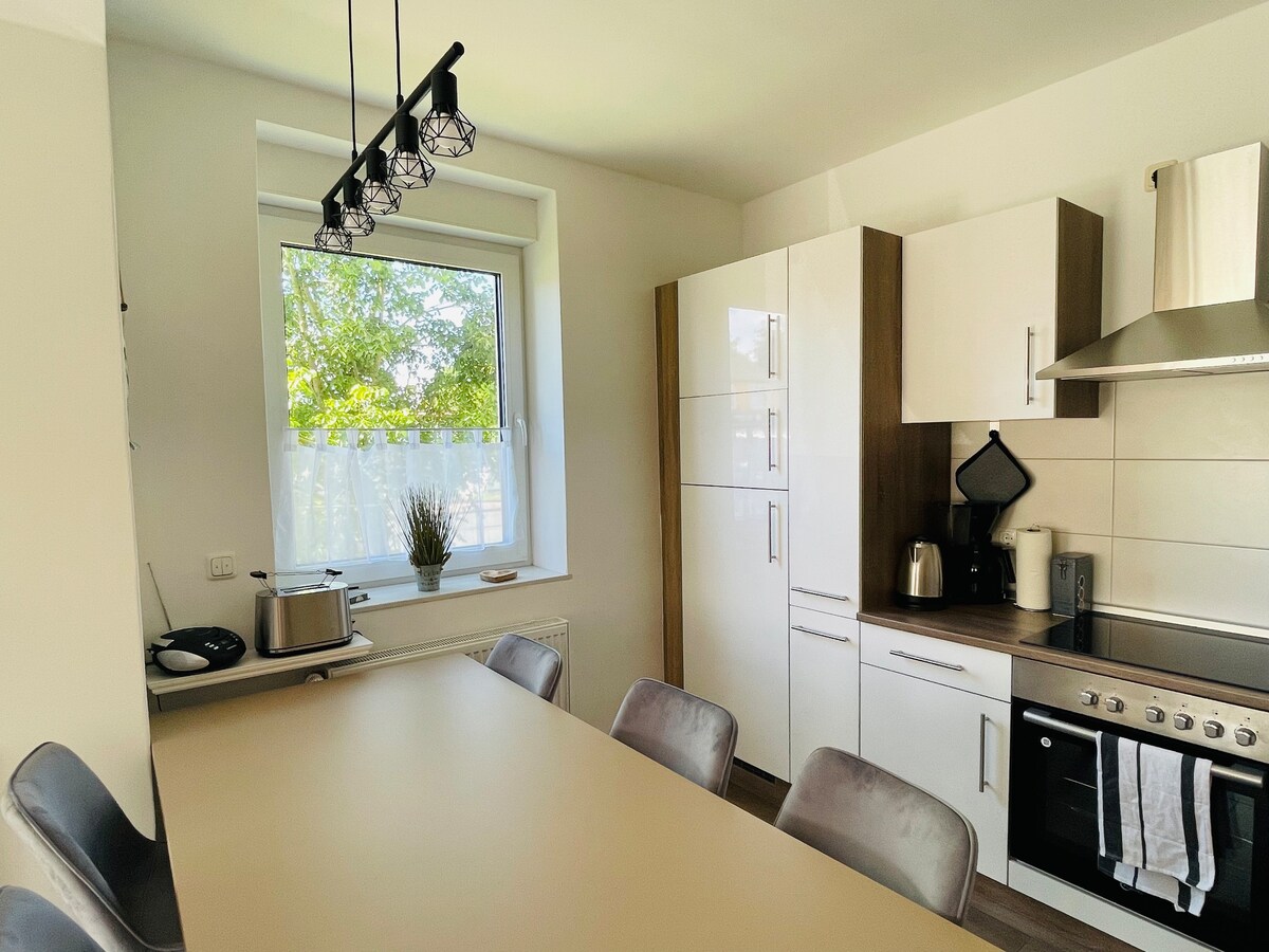 Hola, t'encanten els hostes, el nostre pis es troba al souterrain de casa nostra. Vam comprar la casa a mitjans de 2018 i la vam renovar d'acord amb les nostres idees. El pis està acabat de reformar i moblat en conseqüència. Per a nosaltres, el mar Bàltic ha estat durant molt de temps la nostra segona residència i s'ha convertit en la nostra nova llar. Et convidem a trobar el teu segon allotjament al nostre pis de vacances. Al dormitori hi ha espai per a dos i un bressol també troba el seu lloc.