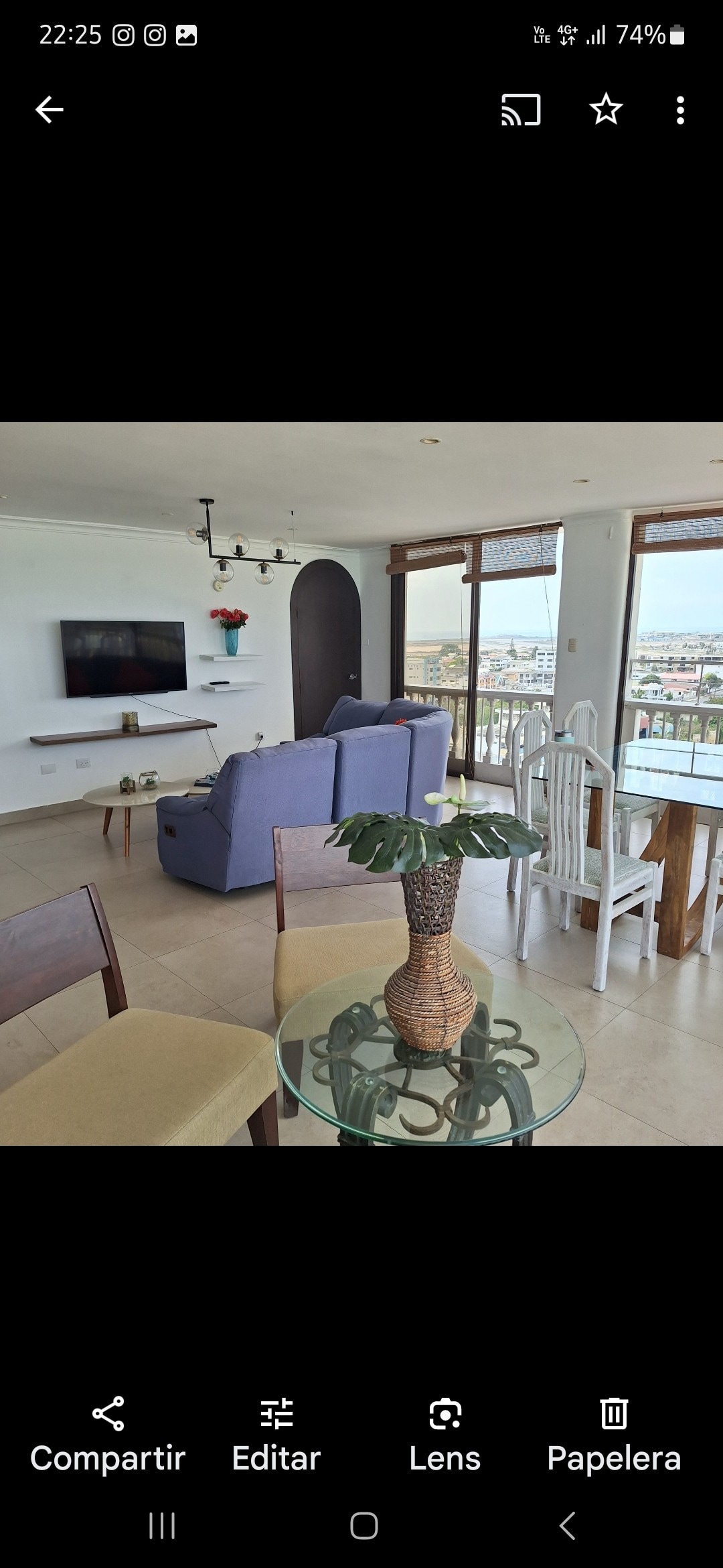Acollidor apartament a peu de mar! Pis situat a la 5a planta del condomini "Torre Naútica", situat al Malecó de Puerto Lucía, disposa de 3 dormitoris amb aire condicionat, 2 banys complets, cuina totalment equipada i oberta, sala d'estar amb zona de cafeteria i un gran balcó davant del mar on podràs gaudir de les millors postes de sol mentre gaudeixes de la companyia de la teva família i amics.