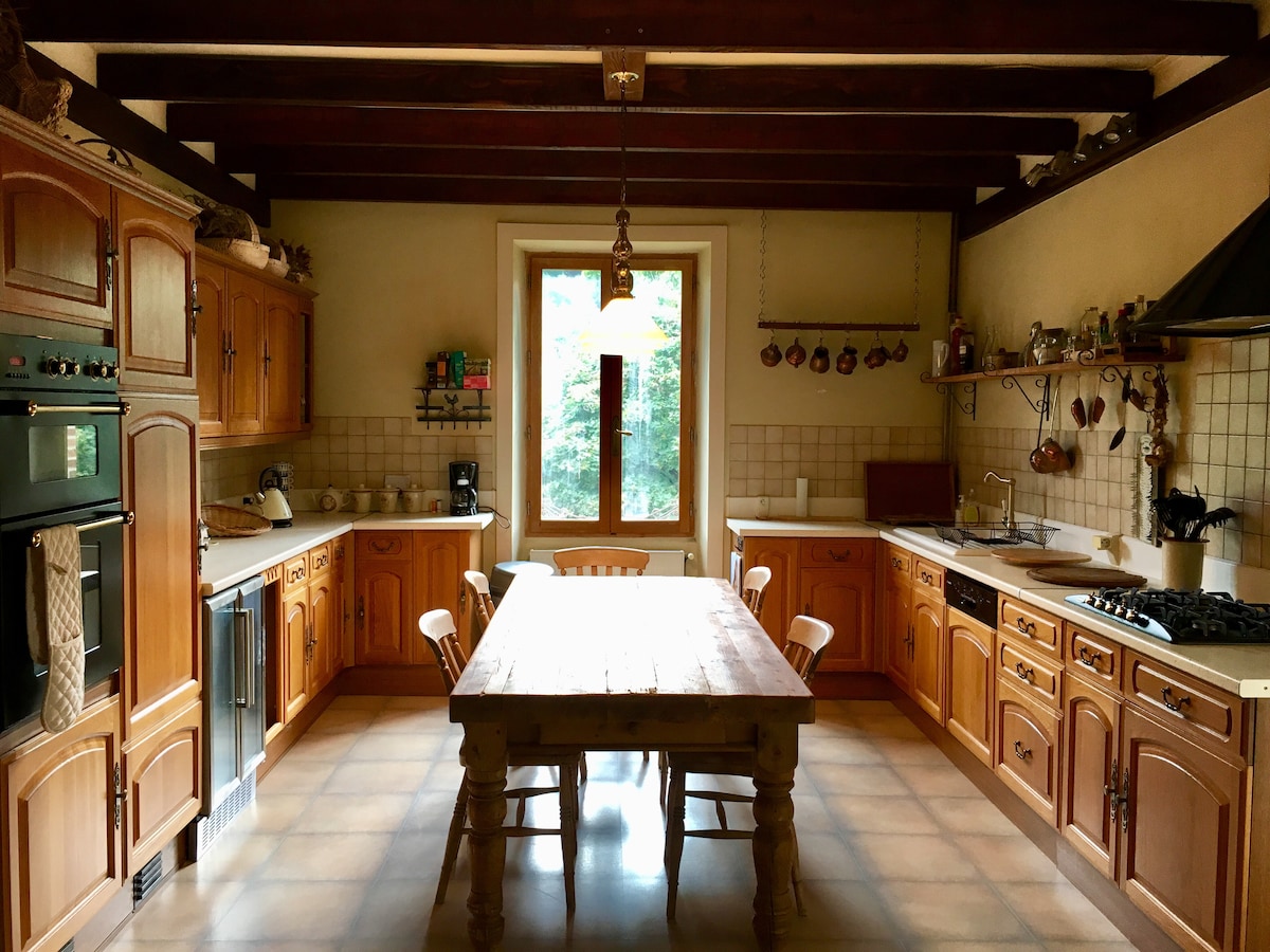 En un lloc màgic al cor verd de França, aquesta vil·la construïda amb arquitectura en una pintoresca vall a la vora del riu amb molta privacitat. La casa té capacitat per a 6 persones. 3 dormitoris dels quals 1 "llittee", cadascun amb el seu propi bany. Una sala d'estar encantadora amb estufa de llenya i una cuina moderna equipada. La façana de vidre ofereix una vista fantàstica de la vall. Hi ha una botiga de queviures al poble. Per relaxar-te, aquest és el lloc!