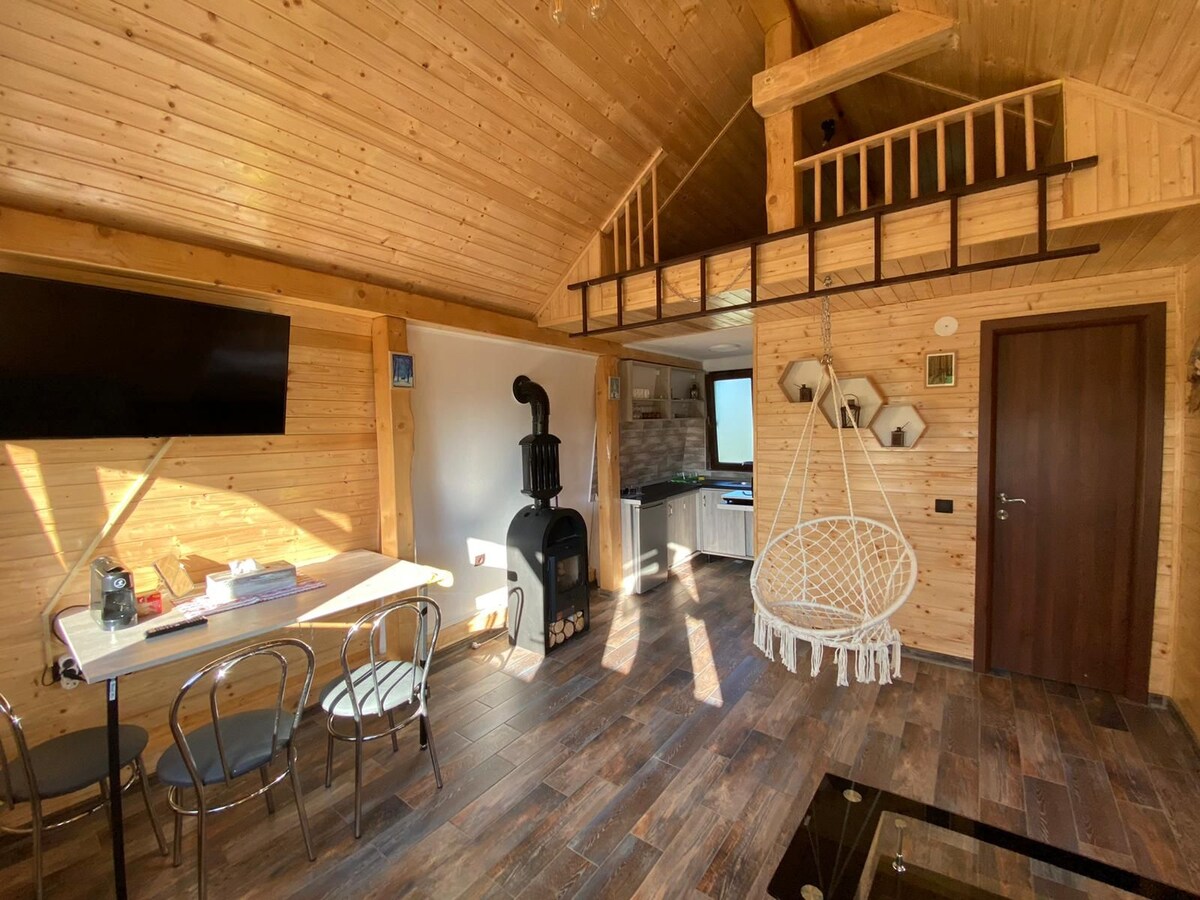 Relaxa't en aquest allotjament únic i tranquil. Enclavat a una alçada boscosa en un petit poble típic dels peus dels Càrpats, el xalet ofereix una vista esplèndida dels turons i el bosc que l'envolten. Gaudeix de la tranquil·litat del lloc per observar el paisatge natural, el cel estrellat o la fauna local, com ara esquirols, cérvols o ocells. El xalet totalment equipat ofereix una sala d'estar còmoda i espaiosa amb tots els serveis necessaris