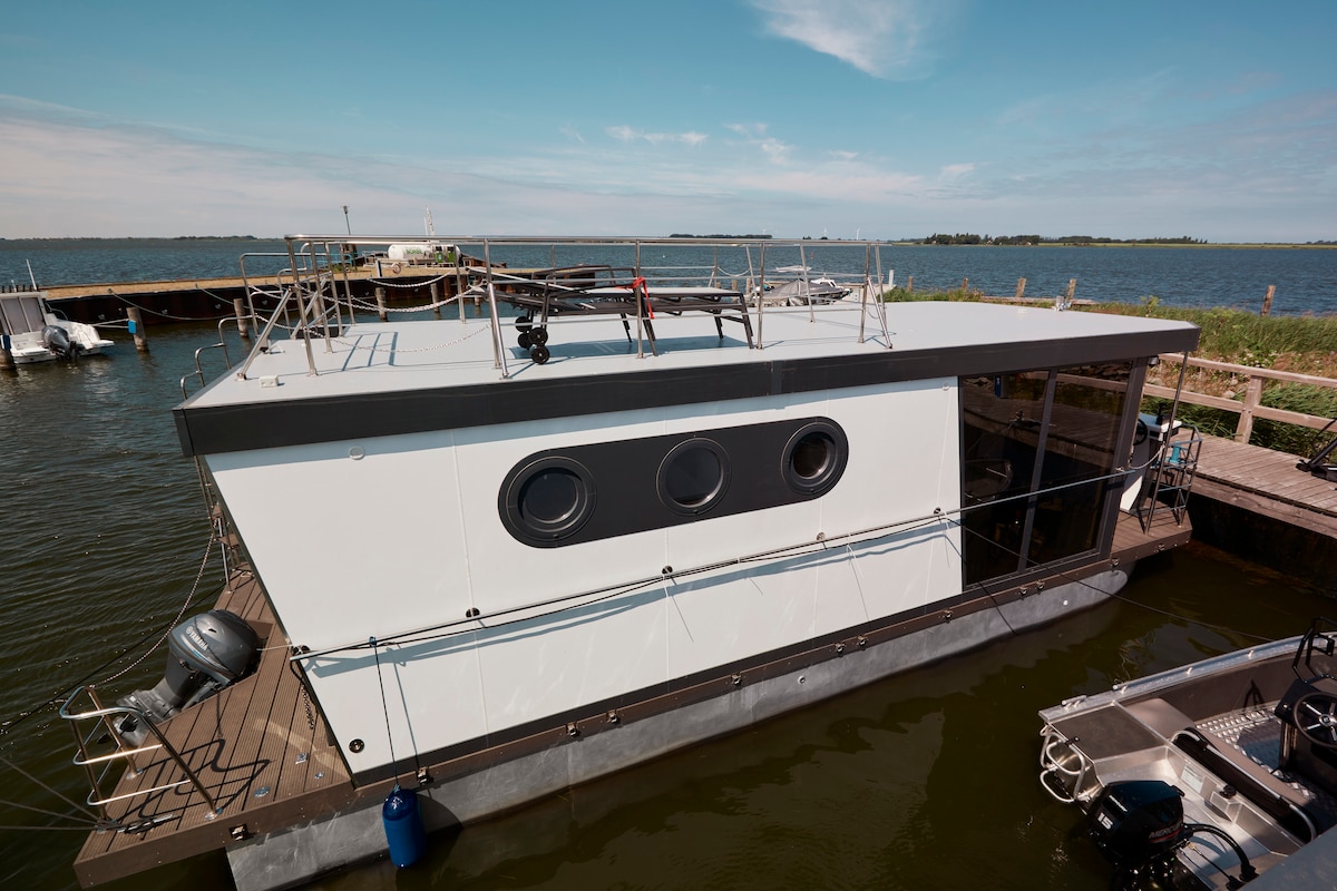 Casa flotant de 44 m² amb llar de foc i aire condicionat a Usedom