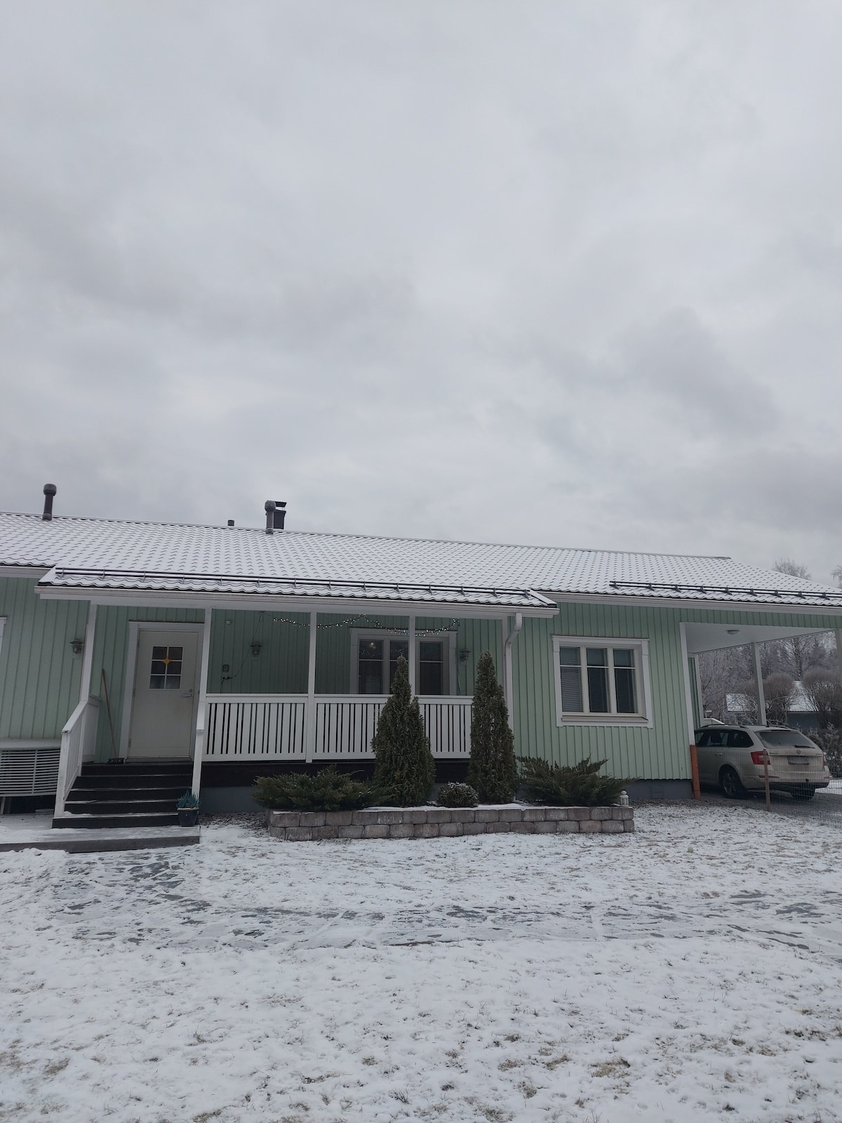El pis forma part d'una casa adossada, té 1 dormitori i una sala d'estar combinada amb una cuina, una terrassa amb mobles per relaxar-se. Es permet fumar a la terrassa, no es permet fumar a la casa. La cuina té tot el que necessites: fogons, forn, microones, bullidor, torradora, cafetera, nevera, joc complet de plats i rentaplats. Es proporciona llenya per a la llar de foc. Hi ha sauna i armari per assecar la roba. La roba de llit es pot portar o llogar. El preu és de 12 EUR per persona.