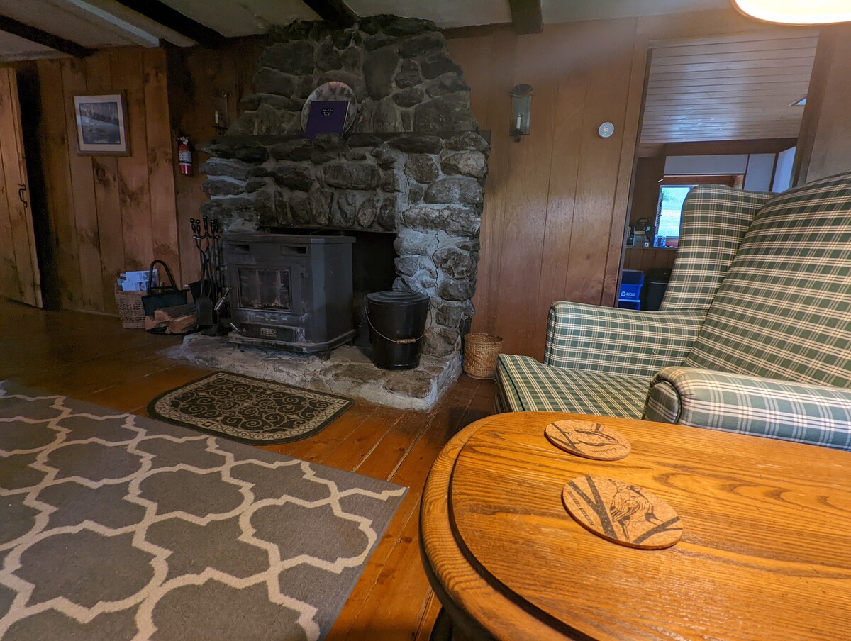 Xalet rural únic i cèntric entre les muntanyes Adirondack i Green Mountains en 60 hectàrees. Starlink està disponible si el telèfon no funciona aquí. A prop de Lk George, Lk Champlain i VT. Senderisme, peix, nedar a prop. Aire condicionat a la planta principal per als mesos d'estiu. La nostra disposició solar de 9120 watts alimenta la nostra propietat. Durant els mesos freds, gaudeix dels fogons de llenya. La tracció de totes les rodes és imprescindible a l'hivern. Tenim una coberta espaiosa al costat de la piscina compartida, la pèrgola i una terrassa a l'ombra al costat del rierol.