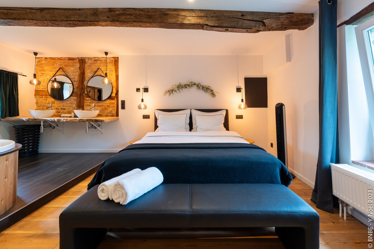 Et donem la benvinguda a la suite meravellosament espaiosa que hi ha a la segona planta de la casa. Tan bon punt entres, descobreixes l'habitació banyada amb llum natural. Gaudeix d'aquestes meravelloses vistes del paisatge verd des del balcó d'aquest apartament bellament reformat. Relaxa't en un llit divinament còmode i dorm com un llit «king size» en aquest entorn tranquil. A menys que prefereixis descansar a la sala d'estar, és molt inspirador?