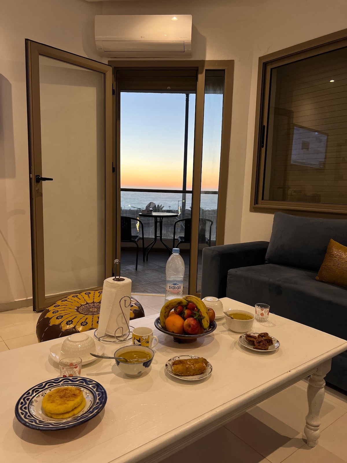 🌴 🏄♂️ Vine a allotjar-te en un apartament nou i modern totalment equipat amb vistes de 180° a l'oceà. Totes les finestres i terrasses donen al mar, a només 500 metres separen l'apartament de l'oceà. L'apartament està situat a 8 minuts en cotxe d'Agadir i a 15 minuts en cotxe de Taghazout. Aquesta no només és una ubicació fantàstica per als amants del surf i la platja, sinó també per a aquells que volen allotjar-se a prop de serveis i restaurants.