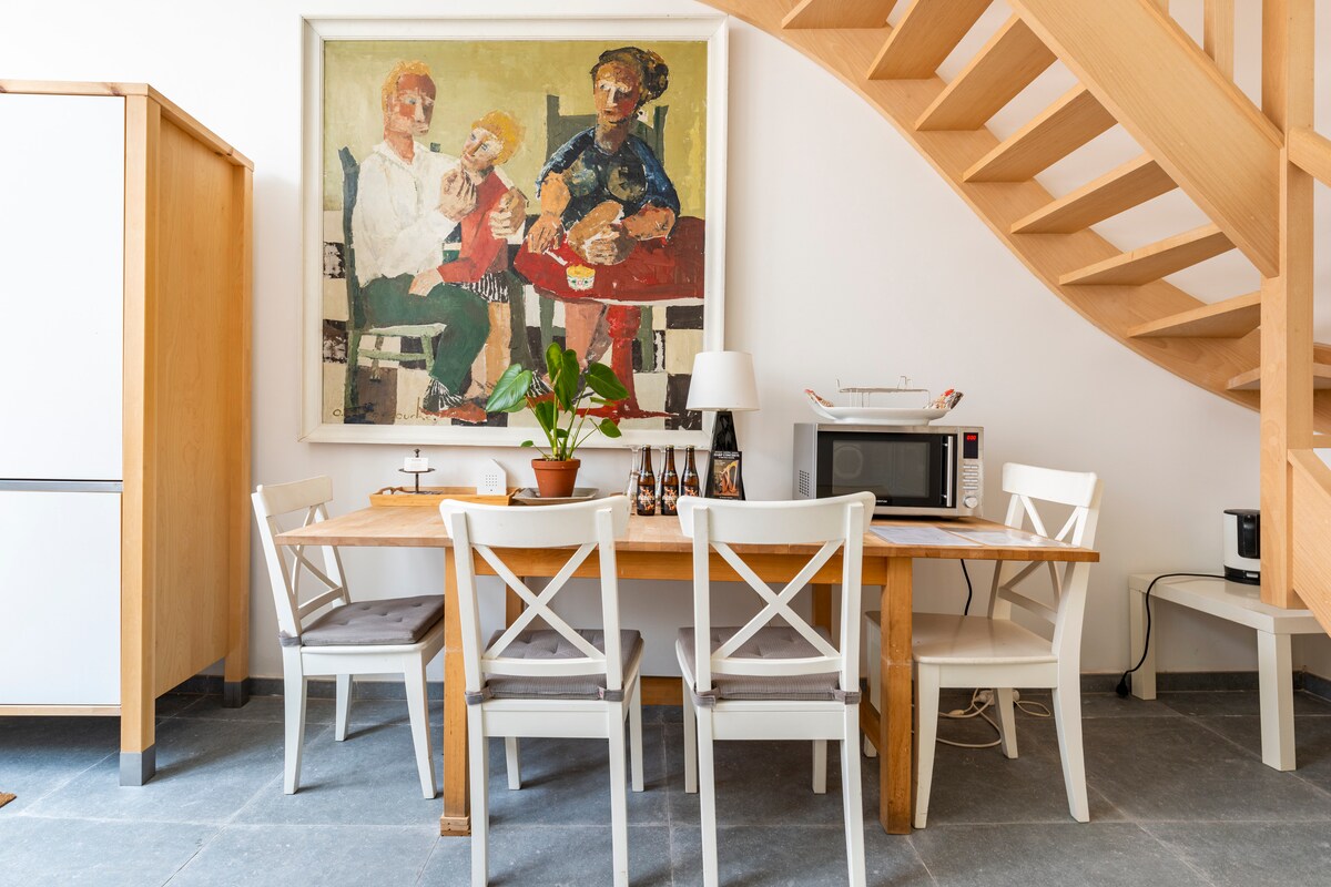 Our loft is situated in the heart of Bruges and has everything you need for an amazing stay. 5’ walk from the city hall, the canals, the main square, ... 15' welk from the train station. The loft is on the top floor of the house where we live, 2 floors up, no elevator. As you can only park on the street for 4h it's easier to park your car in the underground garage named: 't Pandreitje. It's a 5' walk from the loft.