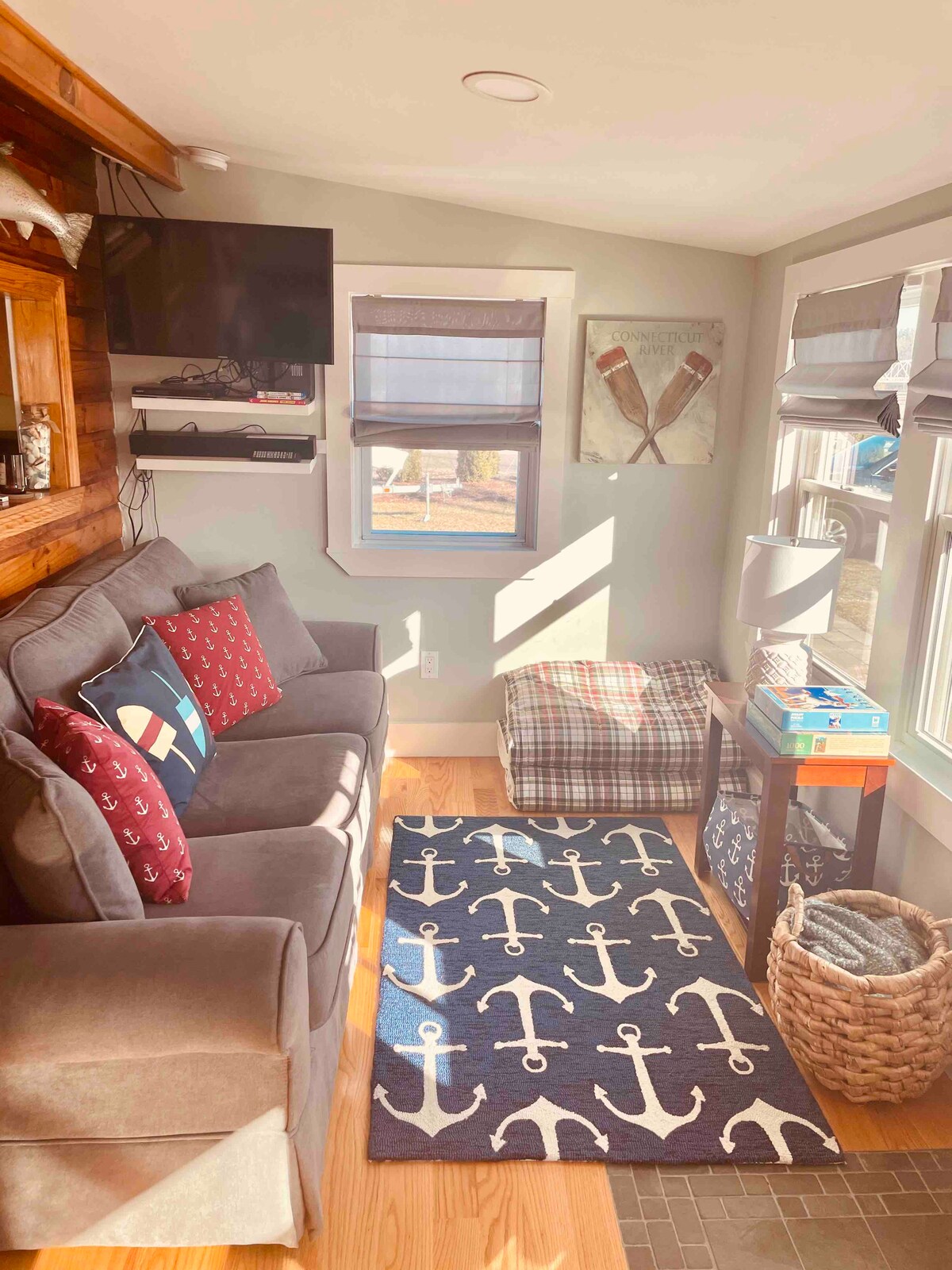 Aquesta encantadora casa rural es troba directament al riu Patchogue amb vistes panoràmiques del riu i dels pantans des de totes les habitacions i a només 1/4 de milla a peu o en bicicleta de la platja. Privat, però a prop de tant, és perfecte per a una escapada romàntica o unes vacances llargues. A l'exterior, pots gaudir de la brisa des de la coberta de Riverfront, Sun Bathe, Crab o Fish al moll inferior, veure passar les àguiles o passejar per la propietat boscosa. Porta o lloga un caiac i rem pel riu fins a Long Island Sound.