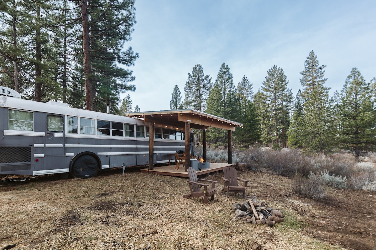 *Llegeix tot l'anunci abans de fer la reserva* Skoolie /ˈsku:.li/ sustantiu 1. Un autobús escolar convertit en una caseta. Vine a allotjar-te al nostre autobús escolar Thomas de 1992, que hem convertit en una bonica caseta i que ara compartim amb tots vosaltres al nostre pati. Disposa d'aigua corrent, electricitat, un llit «king size», una cuina petita i un bany. Vam instal·lar sostres de cedre a tot l'autobús que el fa sentir (i olorar) molt acollidor.