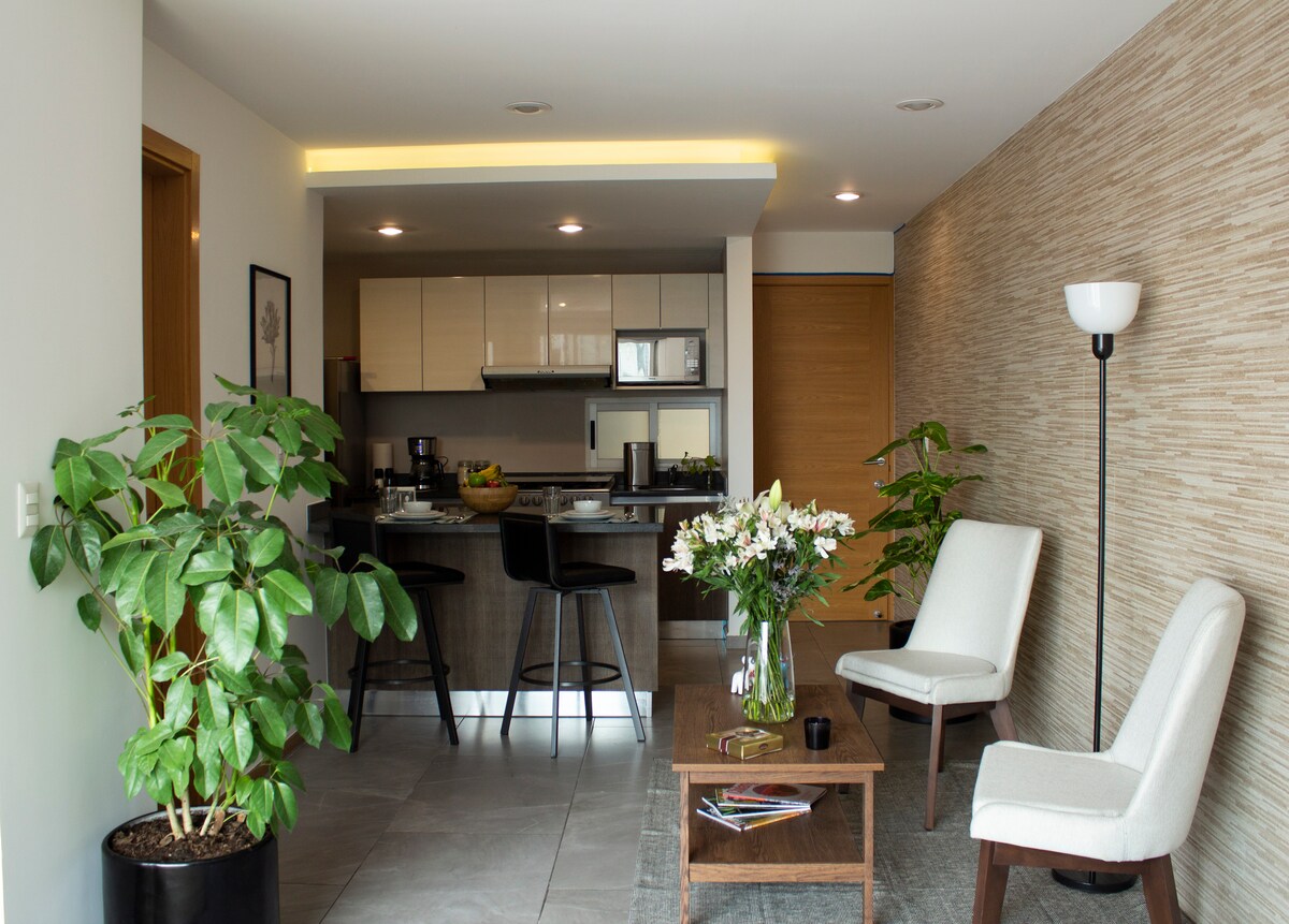 Pis/estudi d'un dormitori modern i còmode, un bany complet i un altre mig bany, cuina oberta i sala d'estar amb sofà llit i escriptori, en un edifici nou amb una ubicació molt cèntrica i estratègica a Colònia del Valle Centro. __________________________________ Apartament estudi modern i còmode amb un dormitori, bany complet, un altre mig bany, sala d'estar amb sofà llit i escriptori, cuina oberta, en un edifici nou amb ubicació cèntrica i estratègica a Colònia del Valle centro.