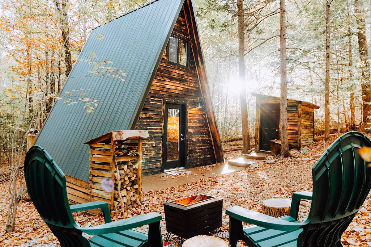 Cabana triangular artesanal a prop del llac Newfound i de zones de senderisme