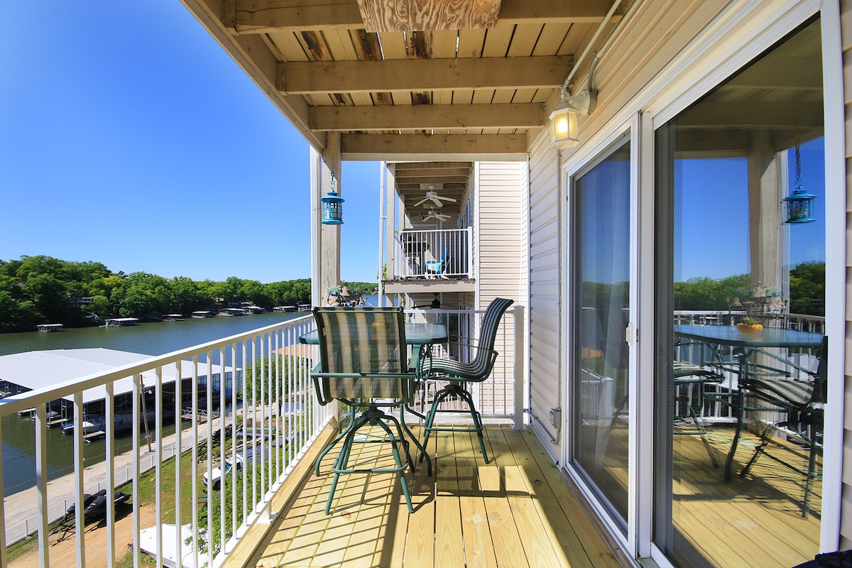 Spring break! Truly a guest favorite at the lake - If you're looking for the BEST VIEW of the main channel, then welcome to Tara Condos! 1 bedroom, 1.5 bath, top floor, condo with a loft and HUGE private balcony on the water where you can nestle into a hammock and immerse yourself in views of summer sunsets and stargaze. Located on the desirable Horseshoe Bend—close to restaurants, bars, golf courses, & more! The complex also has a pool with lake views (mid May-mid Sept) Boat+PWC slip May-Sept