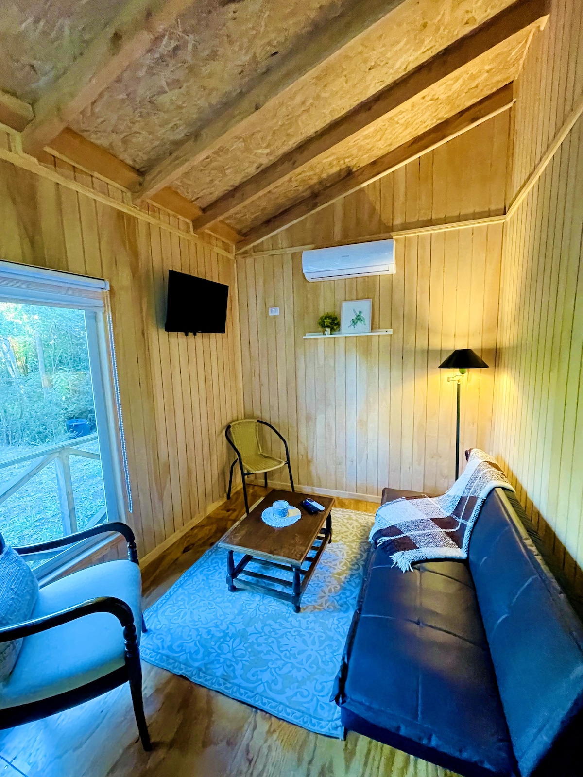 Vine a gaudir de la relaxació i el descans a la nostra caseta forestal, envoltada d'arbres autòctons, una variada fauna salvatge, on sentiràs el cant del Chucao i el Diucón, entre d'altres. On pots passejar amb vistes als volcans Osorno i Calbuco. A prop del parc Vicente Pérez Rosales, el llac Todos Los Santos, Saltos de Petrohué i el volcà Osorno, entre d'altres. Diversitat d'activitats esportives com el senderisme, el ciclisme, el caiac, les copes dels arbres o, simplement, gaudir d'una excursió.