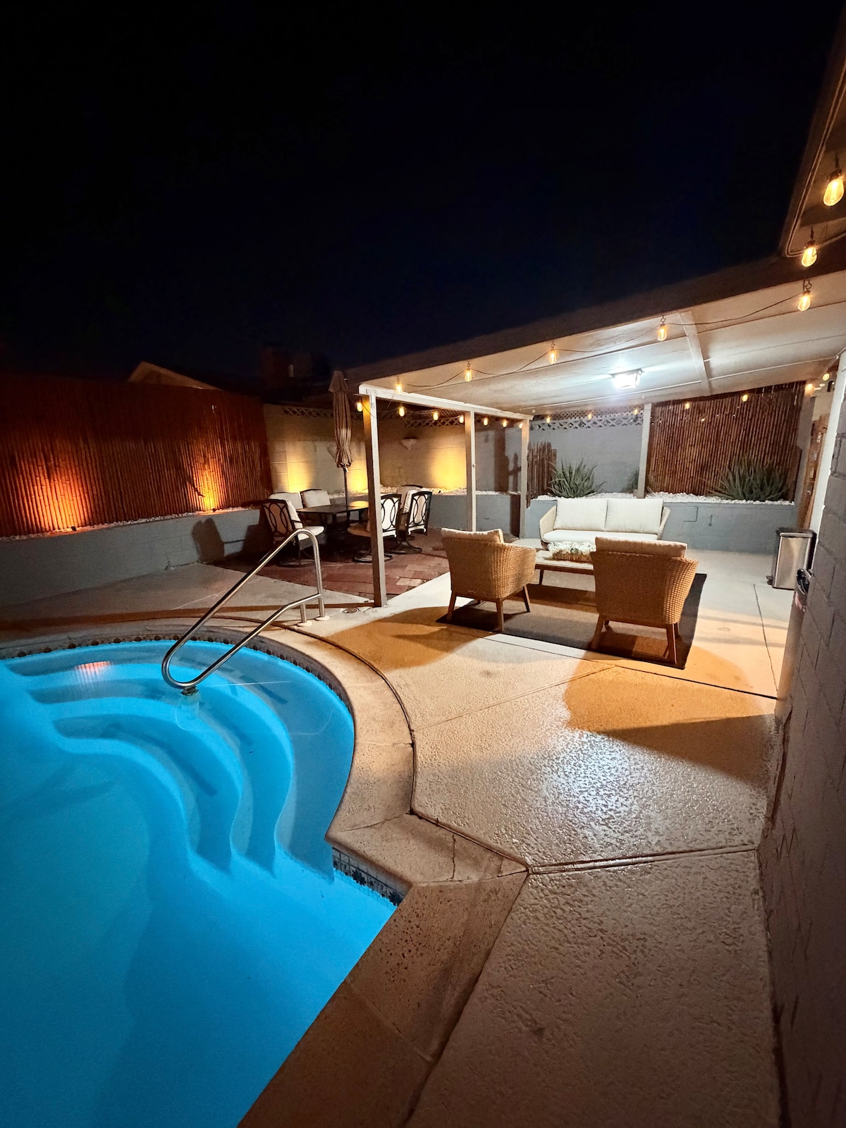 Gaudeix descansant a l'aire lliure a la cabana ombrejada o a l'hamaca, reunint-te al voltant de les fogueres o refredant-te a la casa recentment remodelada. Gaudeix de la banyera d'hidromassatge climatitzada i la piscina espaiosa climatitzada. Els temps de conducció són de només 2 min a l'aeroport, 8 min a la Franja, 12 min a l'estadi Allegiant i 14 min al Centre de Convencions. L'allotjament té capacitat per a 8 persones còmodament amb 3 llits Queen i 1 llit King. Bona cuina, sala d'estar, bugaderia, piscina i espai a l'aire lliure! Internet ultrarràpid de 1000 Mbps. S'admeten animals de companyia. NOMÉS es pot fumar a l'aire lliure.