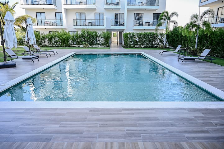Preciós apartament de 2 dormitoris a uns passos de la platja, aire condicionat complet, piscina