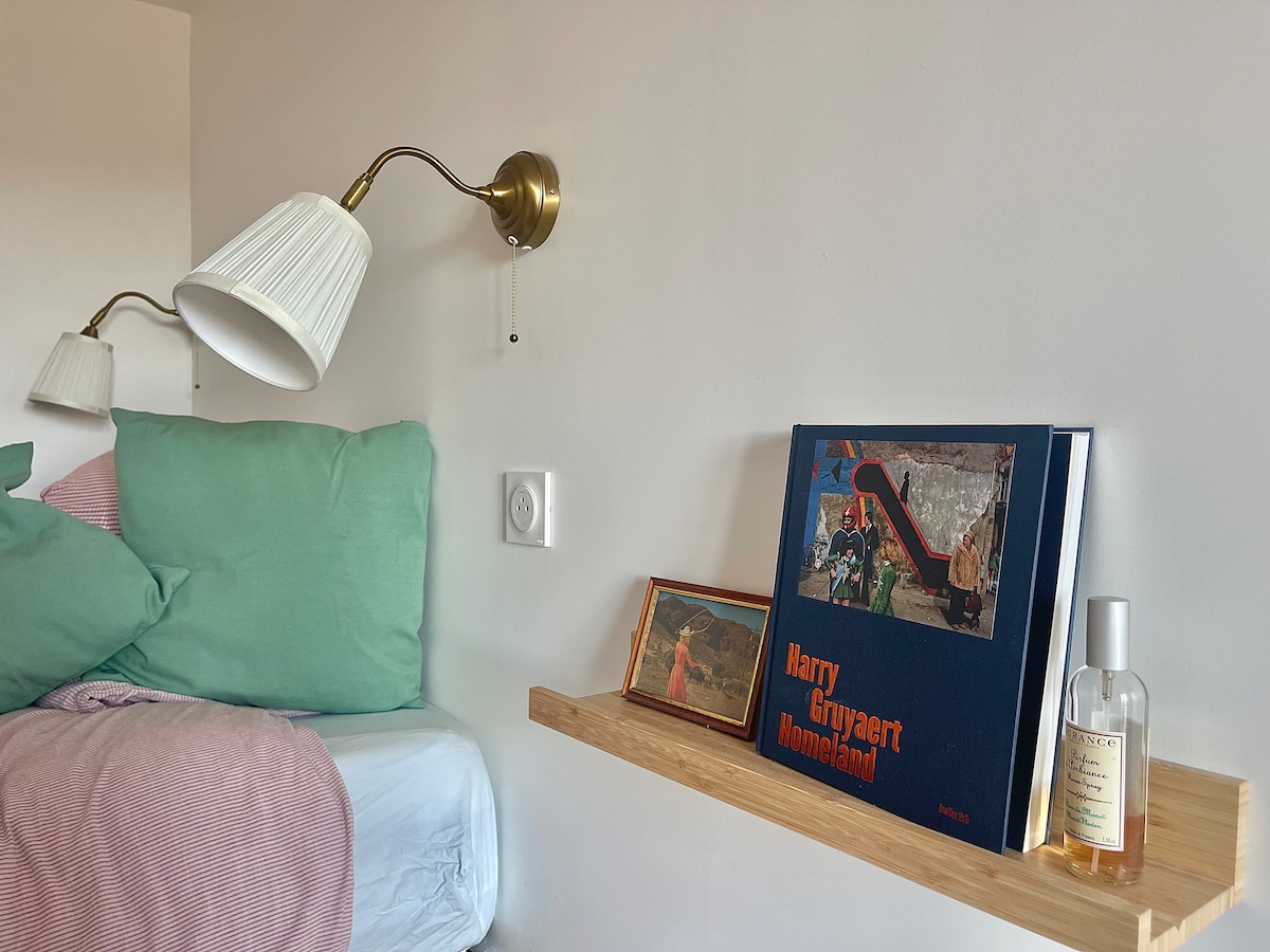 El nostre estudi, per a 1 hoste, lluminós, tranquil, moblat, es troba a l'extrem del nostre jardí, a la primera planta del nostre edifici annex. Hauràs de passar per la nostra casa principal, sense limitació per accedir-hi. Està totalment equipat. Després del dia, pots relaxar-te en una part del nostre jardí boscós. Hi ha una taula, una gandula i una cadira. Matalàs nou (granja) des del març del 2024
