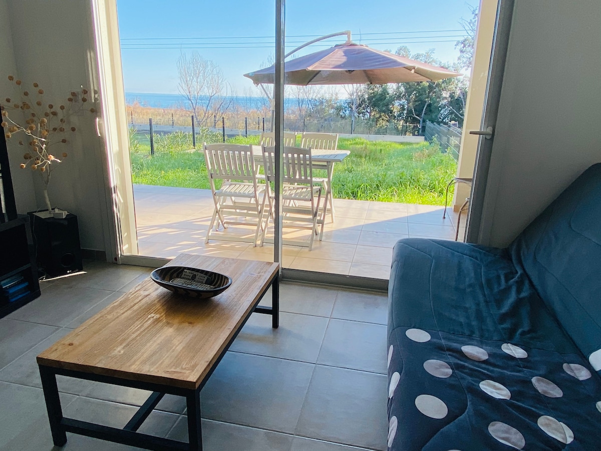 Pis privat de 2** amb entrada independent i accés directe al mar situat al sud de Solenzara: Pis de 50 m2 amb aire condicionat Una sala d'estar, una cuina equipada amb rentadora i rentaplats amb vistes a una zona de menjador i una sala d'estar amb un sofà equipat amb televisor. Un dormitori: 1 llit queen size de 160 cm i 1 llit de 90 cm (roba de llit) no proporcionat ) Bany amb dutxa i terrassa amb barbacoa amb vistes al mar amb accés directe a una platja petita