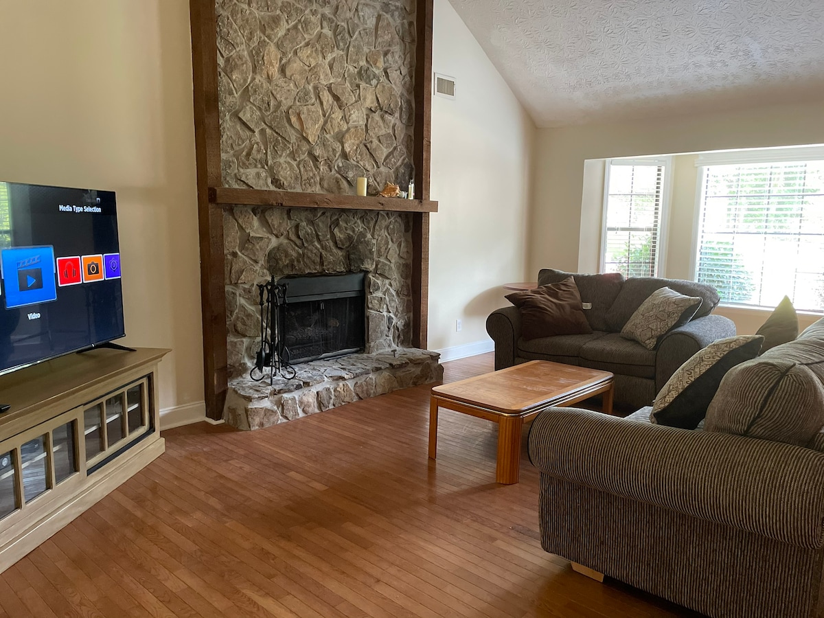 A 11 km de Gas South. Gran dormitori. Hoste/casa en una casa privada. Té un dormitori de 240 peus quadrats amb llit King, armari, escriptori i televisor. 225 peus quadrats d'una sala d'estar molt ben moblada amb un sofà i un sofà llit doble, taula central i un televisor. Cuina completa/menjador amb plats per cuinar/menjar, fogons amb forn, cafetera Keurig, batedora, torradora, rentavaixelles, microones, forn, fogons i televisor. Un bany acollidor amb banyera i dutxa. Sempre equipat amb tovalloles netes i els articles de tocador necessaris i articles de cura bàsics per si t'has oblidat de portar els teus. Tenim una bugaderia amb rentadora i assecadora.