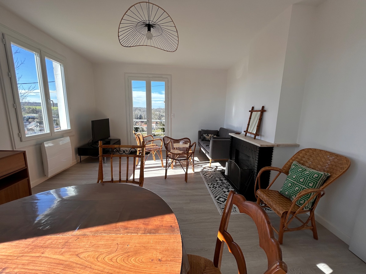 Pis lluminós de 60 m² a la primera planta, amb una sala d'estar/menjador, una cuina totalment equipada, una oficina, un dormitori amb un llit de 160 cm, un bany i un vàter independent. Situat al cor del centre històric d'Angoulême, ofereix un entorn tranquil a la vegada que està a prop de tots els serveis. Aquest pis és el punt de partida perfecte per explorar la ciutat a peu i gaudir dels seus nombrosos esdeveniments, ideal per gaudir d'una autèntica experiència d'Angoulême.