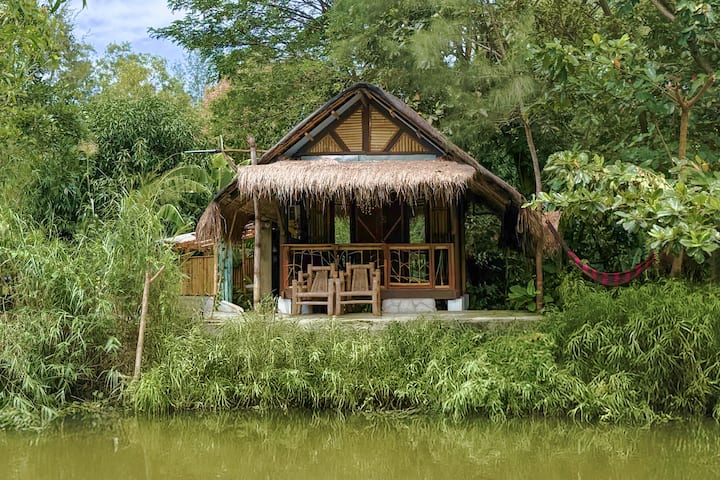 Caseta de bambú al costat del riu | Wifi, a prop de la platja de Liwa