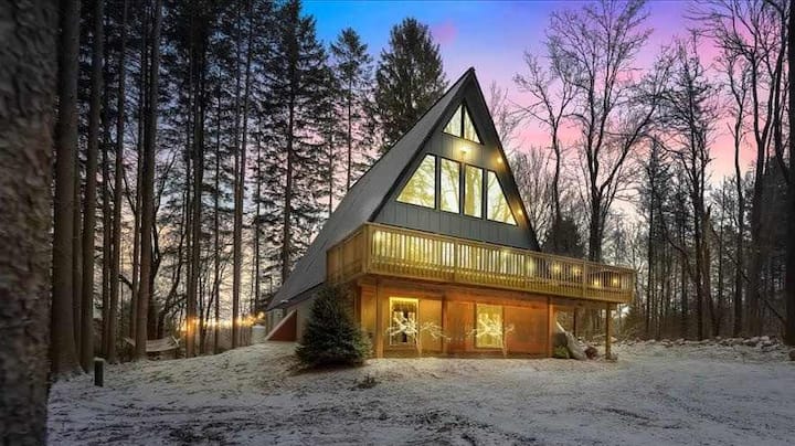 Banyera d'hidromassatge, sala de jocs, espai per fer foc, a prop de pistes d'esquí, animals de companyia