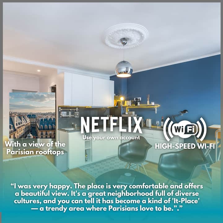 Pis encantador al centre de París amb vistes des de la teulada