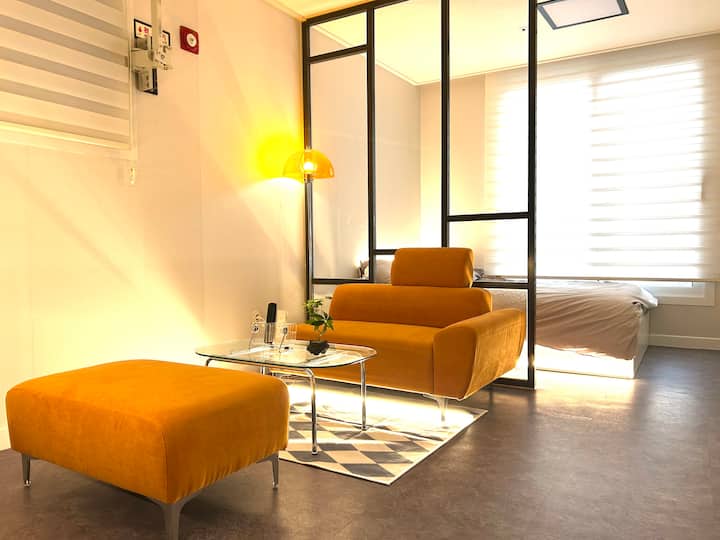 Aparcament gratuït durant el Chuseok / Aparcament gratuït de 17:00 a diumenge / A peu de Haengnidan-gil / Cadena a les 15:00 / 2 habitacions àmplies / Netflix gratuït