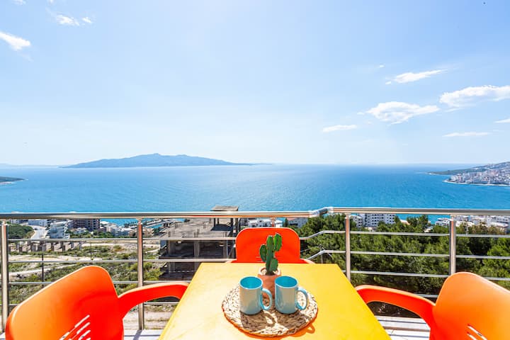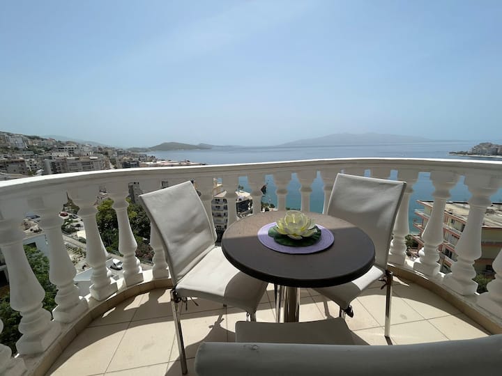 Àtic de 3 habitacions, vista al mar i a la ciutat de Saranda