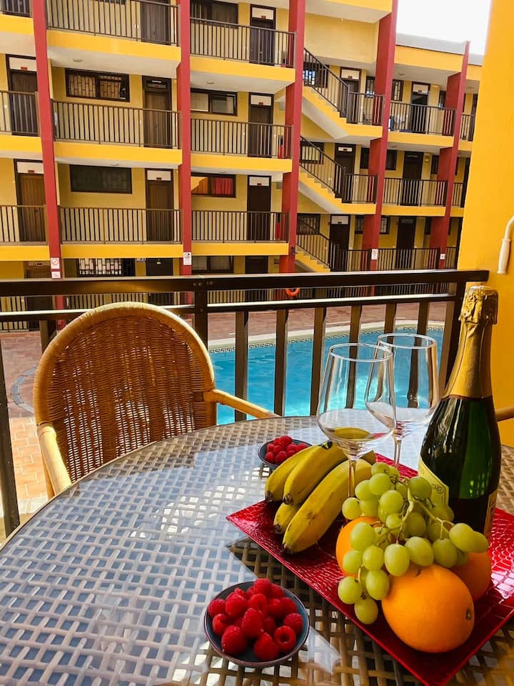 VV, terrassa, vistes al mar, wifi, aire condicionat, piscina, a 50 metres de la platja