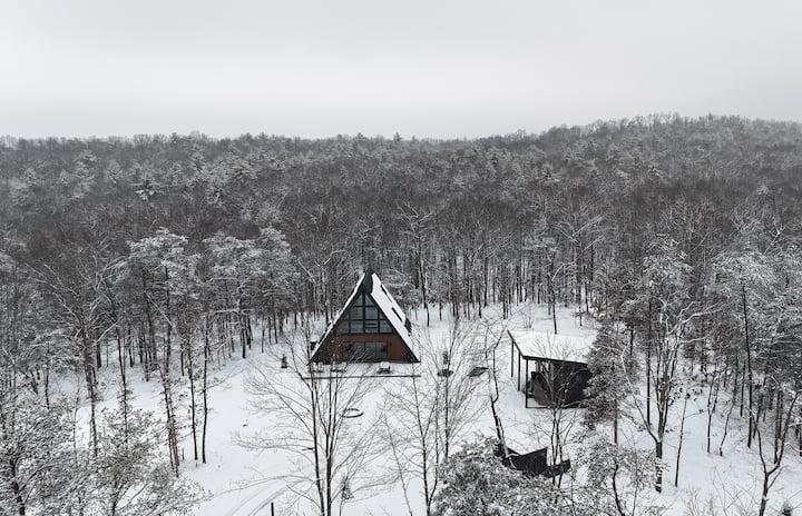 Bluebird Cabin - Acollidor refugi amb estructura triangular - Espai per fer-hi foc