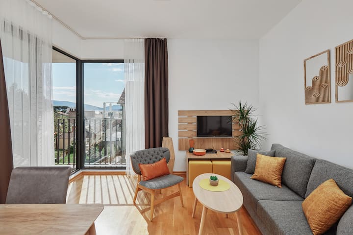 Pis acollidor d'1 dormitori amb vistes al mar a Tivat
