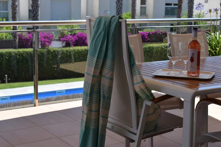 Pis modern i lluminós a la platja, amb terrassa amb vistes al mar