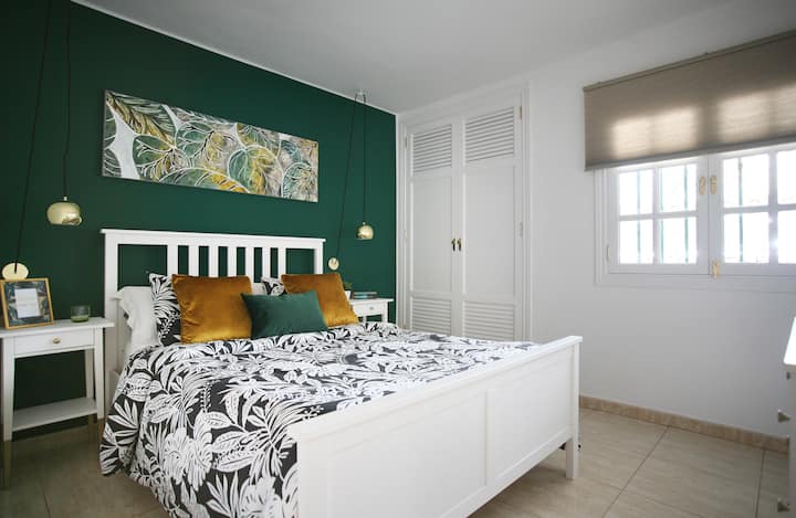 Bungalou preciós d'1 dormitori, wifi, piscina, televisor complet.