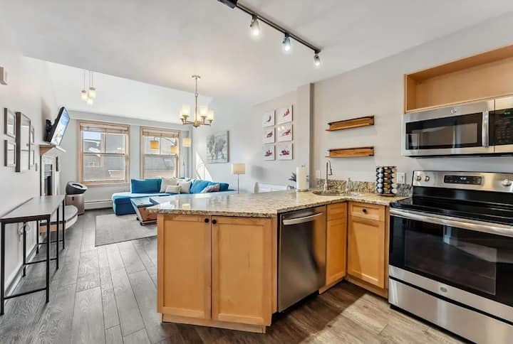 1BR Mountainview | Balcó | Llar de foc | Banyera d'hidromassatge