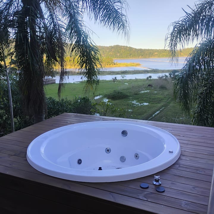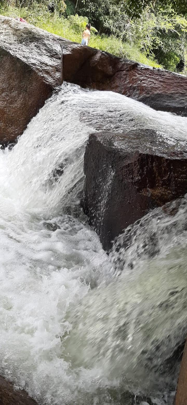 Xalet davant de la cascada amb jacuzzi i llar de foc